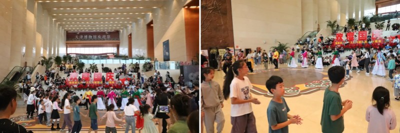 三馆结合馆藏优势、地方特色、节日氛围等因素,精心策划一系列丰富多彩、形式多样的社教活动,增强博物馆参观的体验性、互动性。中秋节当天,天津博物馆携手天津交响乐团举办“情满中秋节 月圆人团圆”主题音乐会。国庆节当天,上演“歌唱祖国”快闪活动,广大市民深情同唱一首歌,为祖国送上最真挚的祝福。