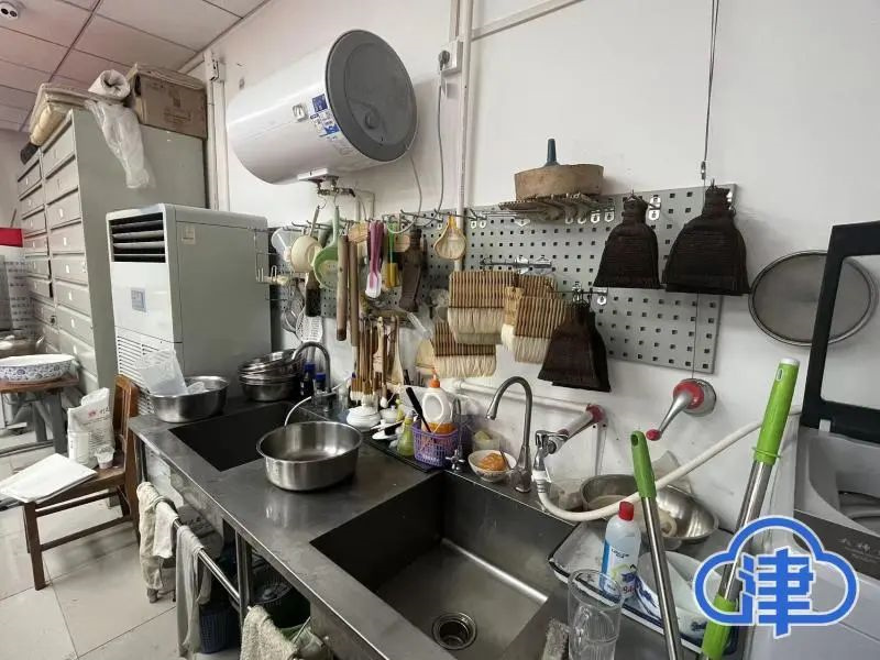 这是一间130平方米左右的房间,房间内,温度、湿度的监控装置实时记录着屋内的数据。房间的一角挂着各种刷子、制作糨子用的过滤器皿、类似擀面杖的捣糨子工具等,有些像家里的厨房……