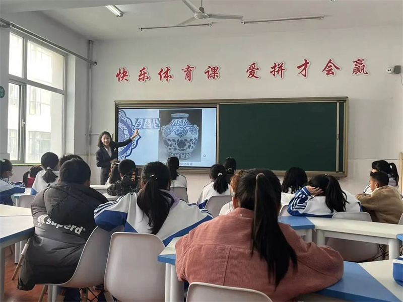 接下来,天博讲解员们为不同年级学生分别进行了《天津的胜利》与《幽菁可爱的青花瓷》课程。由于这是该校首次与天津博物馆合作,许多学生也因路途遥远、家长工作繁忙从未参观过博物馆,因此大家对这样的授课方式十分好奇。看到孩子们求知若渴的眼神,讲解员们更是使出浑身解数,调动大家学习的积极性,用生动有趣的授课方式揭开博物馆在他们脑海中的神秘面纱。