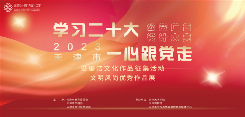 12月8日起,2023年度天津市“学习二十大,一心跟党走”公益广告设计大赛文明风尚主题作品展在天津美术馆二楼共享空间展出。此次公益广告设计大赛由市教委、市文明办、市文化和旅游局主办,天津美术学院、天津博物馆等单位承办。