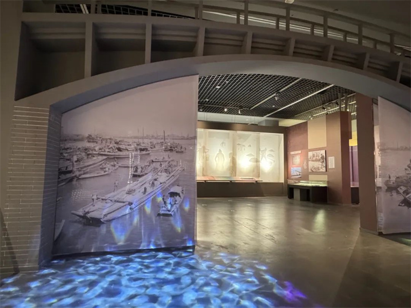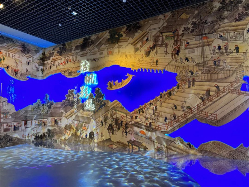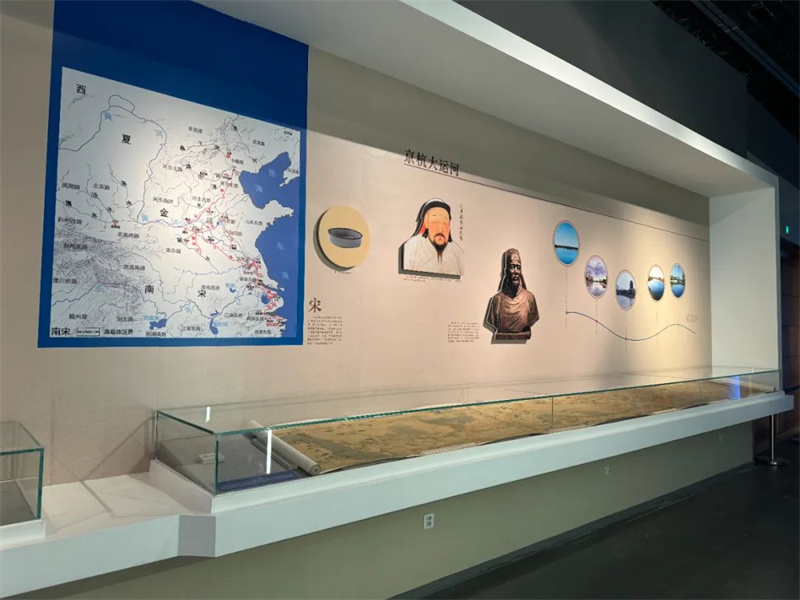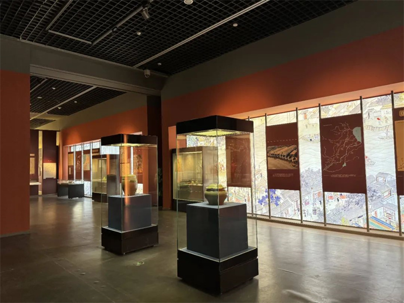 展览秉承着空间利用最大化、展示手段多样化的设计理念,采用交错贯通的设计手法,搭配五种颜色,展线通透流畅。展厅内还设计了6个文化景观,包括卫仓、八旗、大红桥、盐运、水西庄、戏台,以及4处数字化视频互动场景,让观众在互动中,走近大运河、了解运河历史的文化底蕴。
