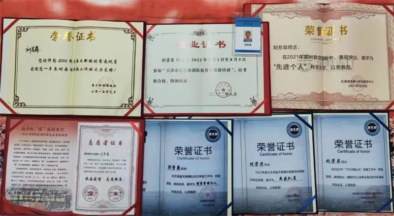 在本职工作之外,她还有一个身份——天津蓝天救援队志愿者。2009年她成为一名应急志愿者,利用业余时间不断学习救援知识、钻研救援技能,从“小白”成长为冲锋在一线的救援队员,参加了2013年四川雅安地震、2021年河南特大洪灾、2023年京津冀暴雨洪灾等多次重大救援任务。