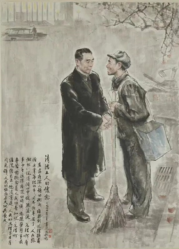 1月8日是周恩来总理逝世48周年的日子,50多年革命生涯,26年总理任期,周总理鞠躬尽瘁,功勋卓著,他的崇高风范,永载史册。周总理在天津度过了他的少年时期,“为中华之崛起而读书”的铿锵话语是他立下的志向,他求学南开后留学日本、欧洲。周总理生前曾多次称天津是他“青年时代的故乡”。天津博物馆收藏了一批艺术家缅怀周总理的作品。如肖玉磊《处处是榜样》和周思聪、卢沉《清洁工人的怀念》等作品,让我们深切感受到总理品格的高尚;吴强年《十里长街人民泪》和董健生《丙辰一月》等作品,再现了十里长街、人群悲恸的场景。