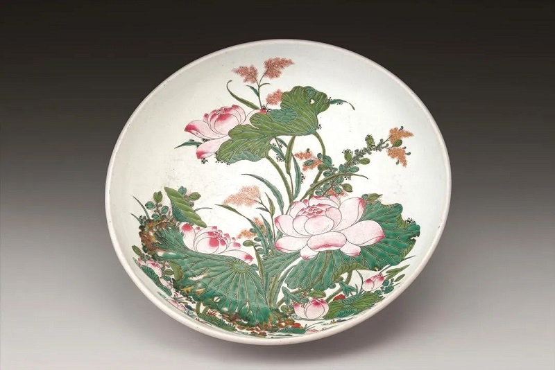 清雍正 “二年试乙号样”款粉彩荷莲纹盘