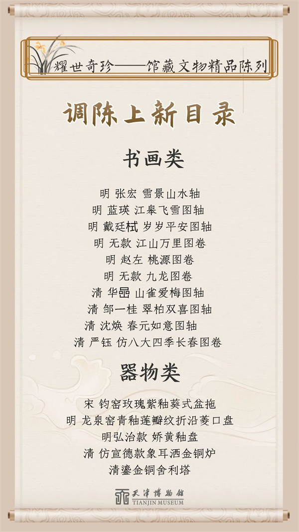 天津博物馆“耀世奇珍——馆藏文物精品陈列”文物调陈上新。新上展品15件/套,包括明清书画及器物类作品,欢迎大家前来观展。