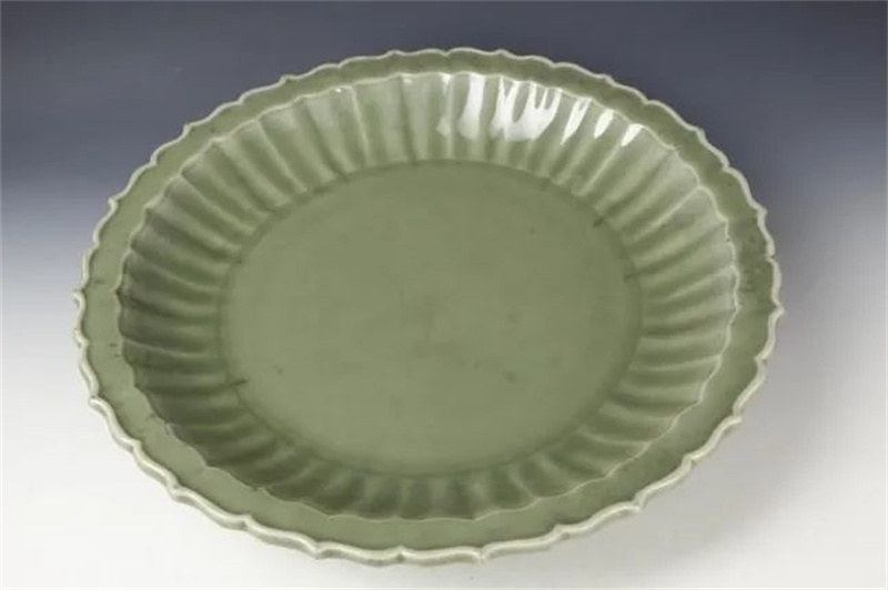 明 龙泉窑青釉莲瓣纹折沿菱口盘