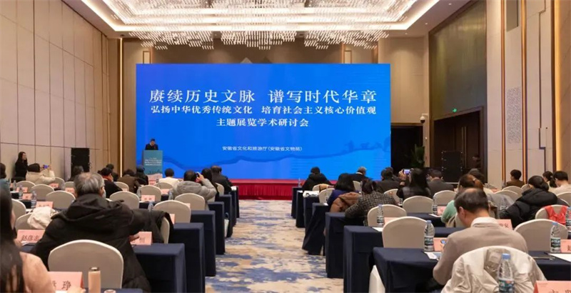 2024年1月23日,由安徽省文化和旅游厅(安徽省文物局)主办的“弘扬中华优秀传统文化 培育社会主义核心价值观”主题展览学术研讨会在安徽合肥召开。中国文物报社、中央部委所属博物馆、31个省(直辖市、自治区)和新疆生产建设兵团入选2023年度“弘扬中华优秀传统文化、培育社会主义核心价值观”主题展览重点推介项目和部分推介项目的相关单位负责人、安徽省文化和旅游厅(安徽省文物局)博物馆与社会文物处有关同志、安徽省一二级博物馆负责人等100余人参加会议。天津博物馆副馆长、李叔同故居纪念馆馆长沈岩应邀出席会议,并在分议题研讨中天津博物馆充分利用馆藏红色文物资源的实践与探索做交流分享。