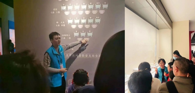 讲解志愿者积极相应馆内工作号召,提前规划安排讲解场次,确保早、中、晚各个时段均有讲解。他们不惧寒冷,他们披星戴月,高质量的讲解源于无数日夜对展览内容的熟悉和挖掘,引领观众体验文物的魅力与先人的智慧。