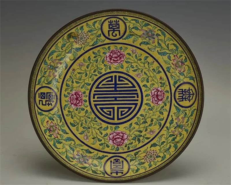 清乾隆铜胎画珐琅万寿无疆寿字盘