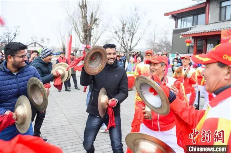 2月24日,天津市宝坻区推出元宵节系列活动。图为外国游客体验中国传统民俗。天津市宝坻区委宣传部供图