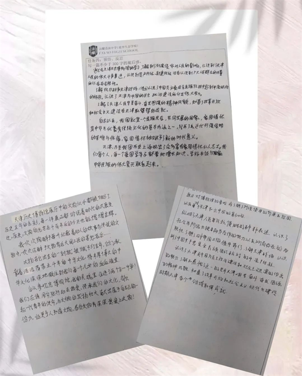 本次活动,不仅帮助学生们梳理了天津历史发展脉络,更激发了大家对中华传统文化的学习兴趣。学生在观后感中写到,“我们应该用实际行动去热爱、传承我们的文化,肩负起一代青年的使命,为中华文化的发扬壮大贡献一份力量,让更多人了解文物,读懂历史。”