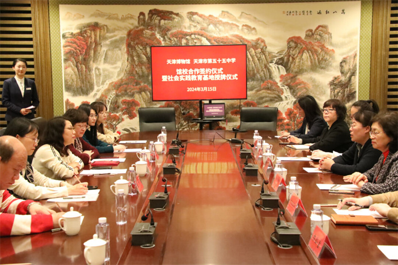 3月15日下午,天津博物馆与市第五十五中学签订共建合作协议。市第五十五中学党委副书记、校长张丽丽,副校长张玉红,馆领导于健、沈岩参加签约授牌仪式。双方就馆校合作、建立社会实践教育基地、聘请大思政课教师等内容进行深入交流。