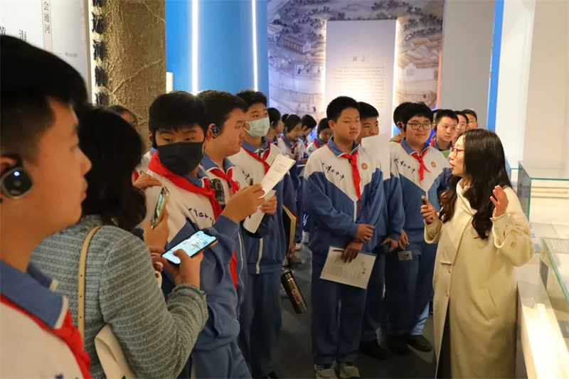 本次课程除了以运河为主题的课程外,还同时开设了《博物馆里探寻中华文明起源》和《文物中的二十四节气》。分别以天津博物馆展览《肇基文明—天津博物馆藏商周文物特展》《岁华纪丽—天津博物馆藏二十四节气文物展》为依托,通过授课教师讲述的藏品及藏品背后的故事,唤起同学们对传统文化的热爱。之后组织学生们参与杨柳青木版年画的拓印活动,让同学们在创作中将理论知识和动手实践相结合,收获了难得的博物馆学习体验。