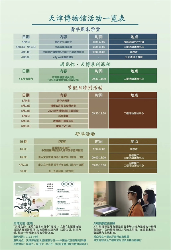 清明节是中华民族优秀传统节日,有着丰富的文化内涵。欢迎您到博物馆,看生机盎然的展览,品鉴馆藏“春日”文物,带充满春天气息的文创回家,感受津派文化的独特魅力。