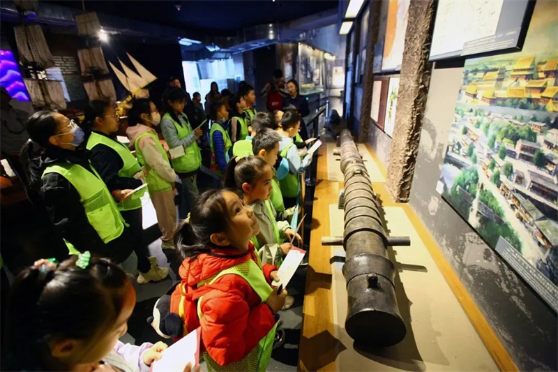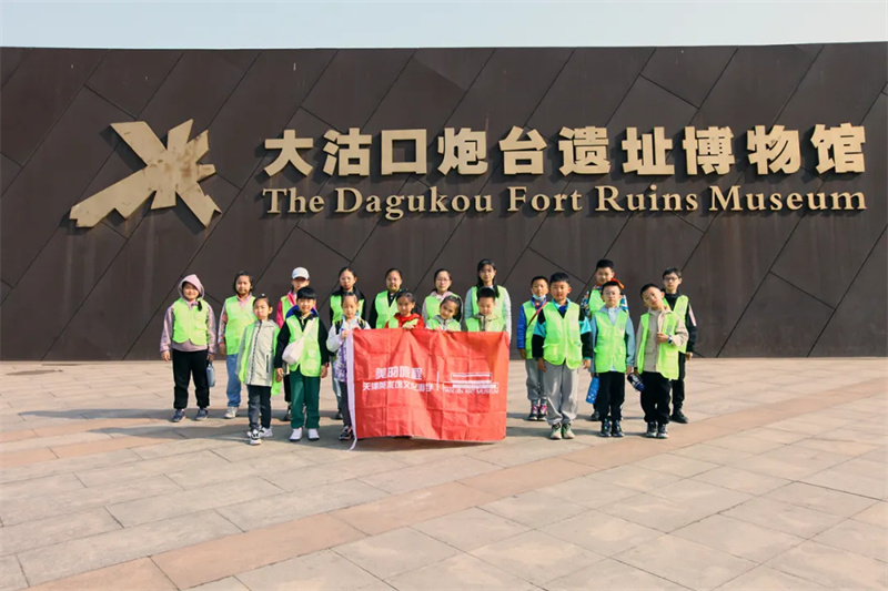 天津美术馆更为大家精心准备了“漂泊百年的钟声”文旅研学活动。少年强则国强,少年进步则中国进步。同学们精神焕发地开启了本次“美的旅程”——天津美术馆文化研学之旅。第一站便来到了大沽口炮台遗址博物馆,怀揣着对历史和文物的向往,全神贯注地参观展览。在宽敞明亮的展厅中,同学们穿过时空的隧道,翻开了中国近代史中不平凡的一页。