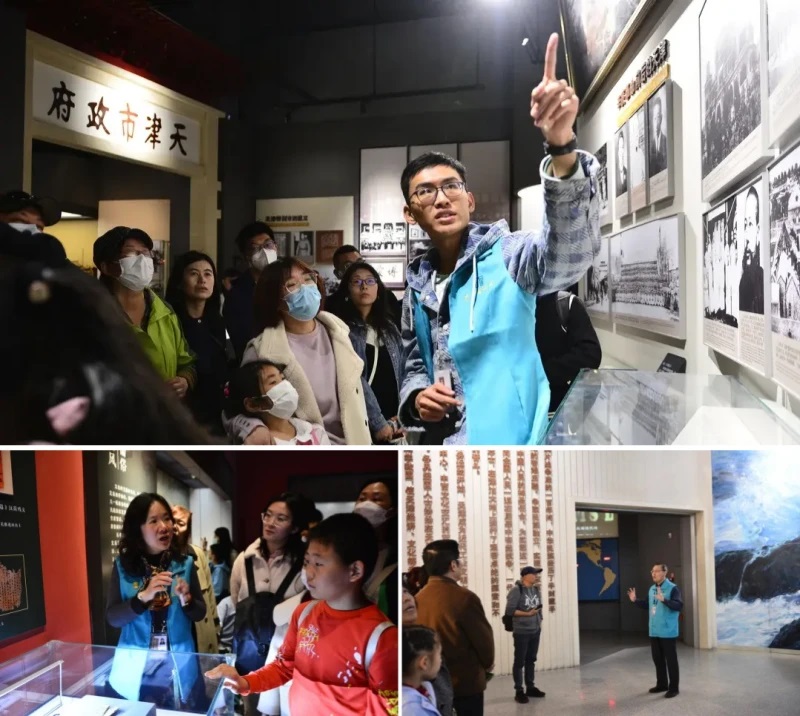在天博“中华百年看天津”展厅,游人如织,每一场讲解前,“天博蓝”志愿者们早早等候在展厅前恭候各方观众。讲解中,他们声情并茂的将天津“当河海之要冲,为畿辅之门户”介绍给大家,将近代天津成为中国工业文明的先驱城市,成为中国北方最大的外贸口岸、工商业中心和金融中心,创造了近代中国第一所大学、第一辆有轨电车等“百个第一”讲述给大家,“天博蓝”不仅带领游客们铭记历史,感受天津历史的波澜,更带领大家体会了时代的脉动,认识一个“开放、包容、创新”的天津。