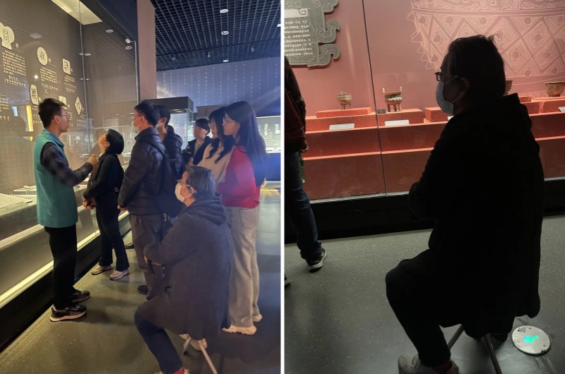 在熙攘的人群中,也少不了【服务组】志愿者们忙碌的身影,除了路线指引、解答问询、维持秩序、社教服务等,“天博蓝”还为特殊人群提供参观服务,让关爱无处不在。他们用周到与仔细的服务欢迎各地的游客参观游览。