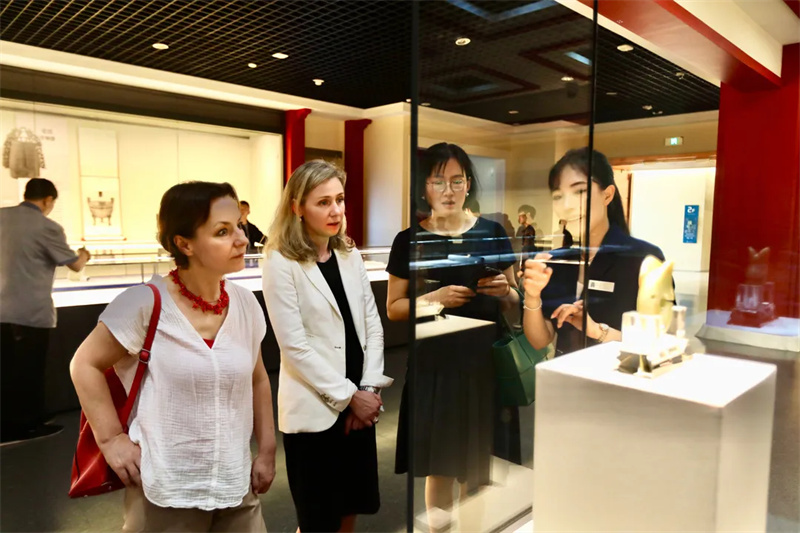 接着,波兰来宾一行参观了天津博物馆“耀世奇珍——馆藏文物精品陈列”,近距离欣赏了中华文明之瑰宝。讲解员向来访嘉宾说明,“这些展品是从20余万件馆藏文物中精选出来的,涵盖青铜器、书法、绘画、玉器、玺印等。”参观嘉宾纷纷对中国数千年来保留至今的国宝文物和传统文化赞叹不已。