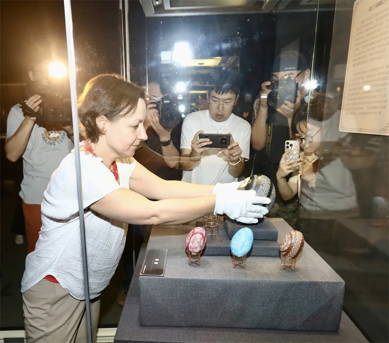“五一”前夕,天津博物馆精心策划推出“瞬间与永恒—波兰琥珀文化艺术展”,受到社会各界的广泛关注。展览自筹备以来得到波兰大使馆的大力支持。近期,该大使馆专门为展览组织创制了三件具有浓郁波兰文化特色的珍贵蛋雕作品。10日下午,波兰驻华大使馆文化处主任马尔塔?德祖尼加,波兰驻华大使馆领事、大使夫人乔安娜?库瓦科夫斯卡?库莫赫专程来到天博,致送展品并亲自将其置放于展柜中。
