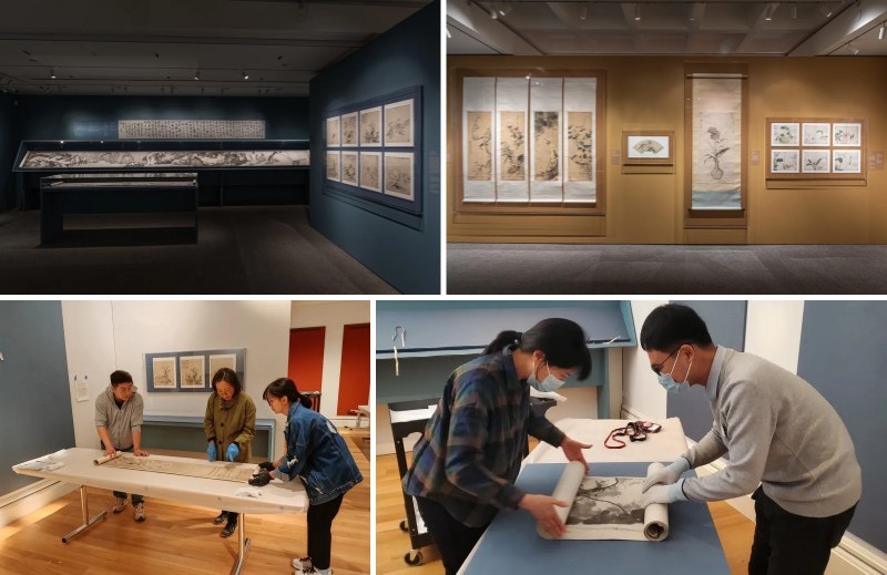 “河上花:中国花鸟画之道1368-1911”于2023年分别在美国纽约华美协进社中国美术馆及圣塔芭芭拉美术馆展出,作为2020年后国内首个出境文物展,是天津博物馆有史以来赴外文物数量最多、筹备时间最长、影响力最大的国际交流项目。天博先后派出5批17人次赴美承担布展撤展、学术交流等相关工作,业务人员克服场地环境、时差影响等困难,与美方工作人员通力合作,圆满完成工作,既展现出了中国古代花鸟画的独特魅力,更展示出了天博人专业、严谨、敬业的工作风格与工作态度。