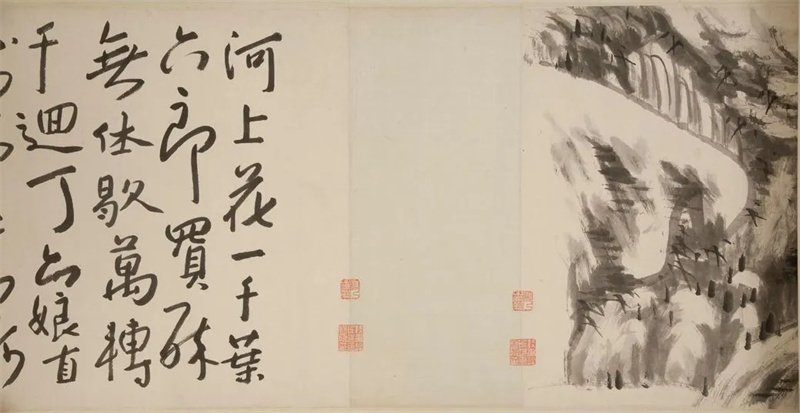 清 八大山人 河上花图卷(局部)