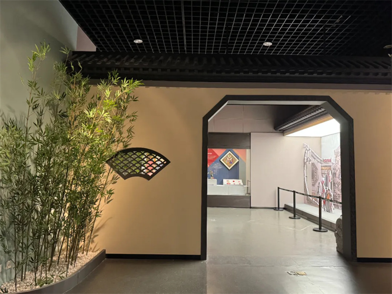 场景三:以天津水西庄为蓝本设计的中式园林门。门雕花和扇形雕花开窗彰显了中式园林的古典美。同时,还加入了一些园林景致,使人沉浸于在竹影摇动之间。这一场景的设计体现了“自然与人文”的和谐共生。通过对自然元素的巧妙运用,创造出一种既具有自然韵味又充满人文关怀的空间氛围。