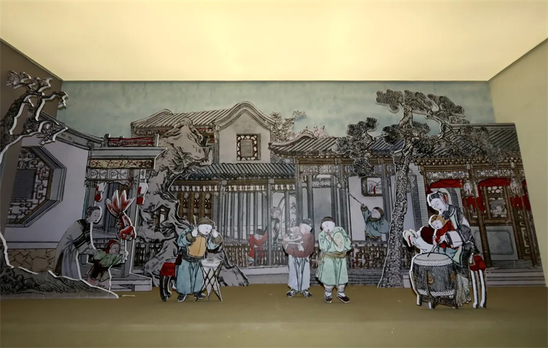 场景二:以杨柳青年画《闹赏元宵》作为灵感来源,将二维的画面转化为三维的年画场景再现,运用解构与重组艺术手法,让观众能够更加直观地感受到画面中的人物和故事。这种设计理念不仅是对“互动性”的追求,也是对古今交融的进一步探索。