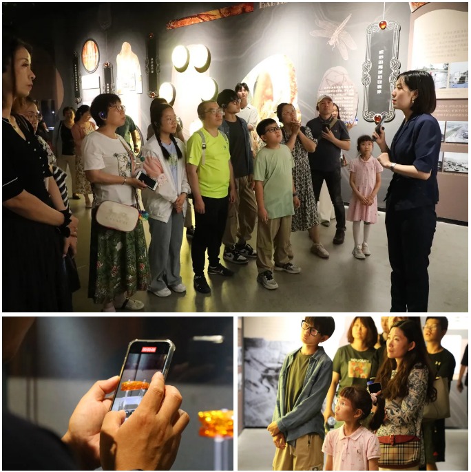 在讲解员的带领下,观众们走进“瞬间与永恒——波兰琥珀文化艺术展”欣赏各类琥珀珍品,探索神秘的琥珀世界。