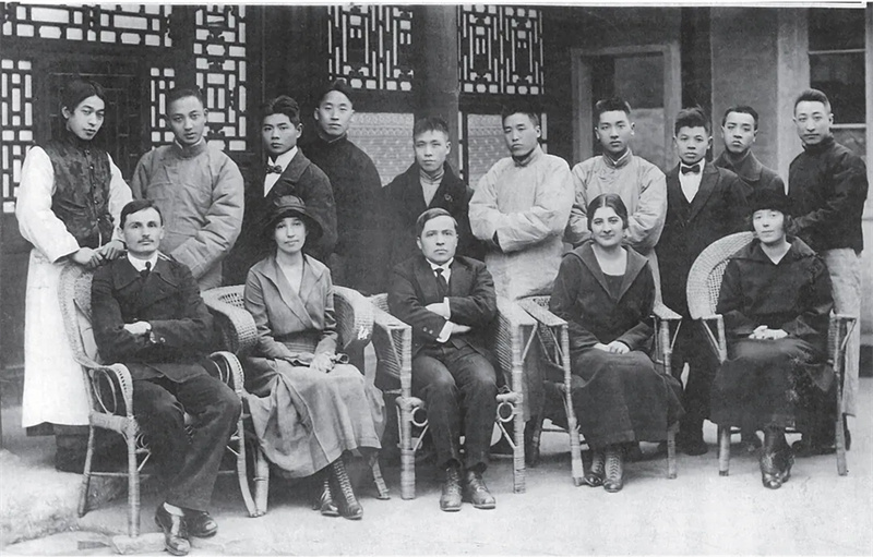1923年鲍立维(一排左三)在北京大学与其他师生的合影