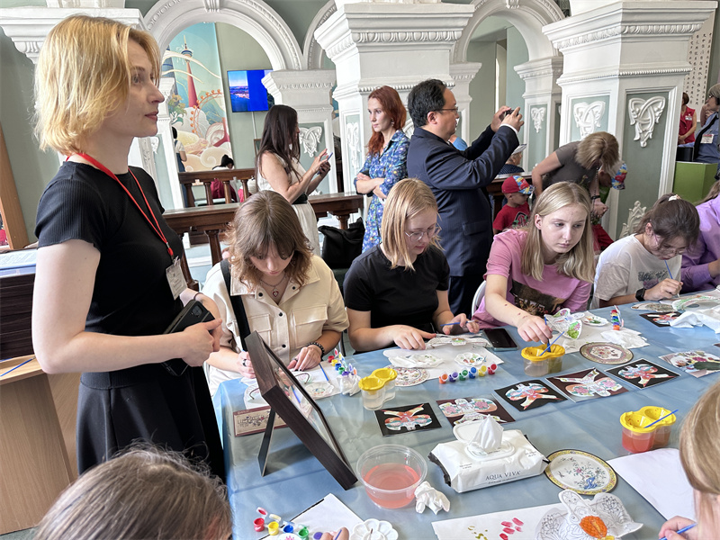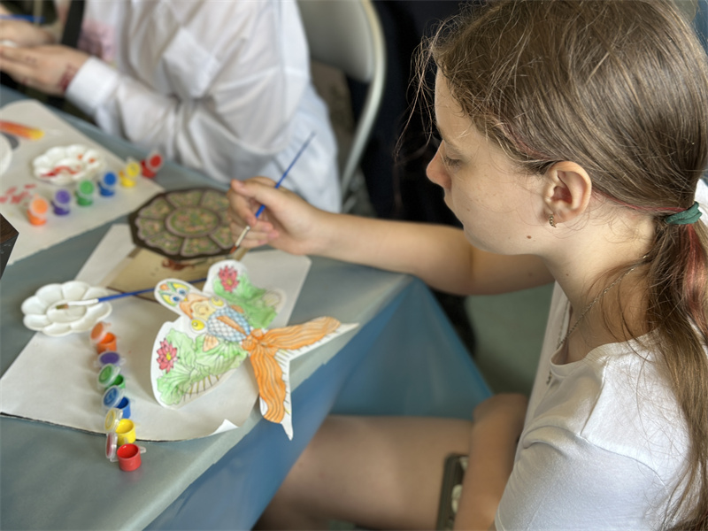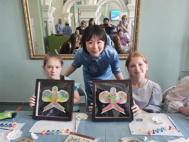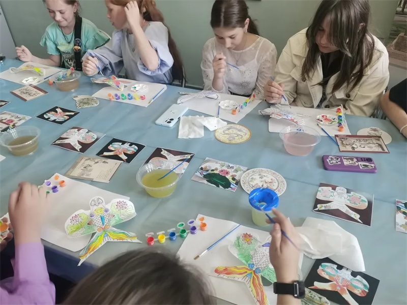 展览专设非遗活动区,邀请当地小朋友体验杨柳青木版画拓印、传统纸鸢上色等天津非遗传统技艺。通过动手实践,让莫吉廖夫人民感受天津非遗的魅力,进一步增强对中华优秀传统文化的理解。