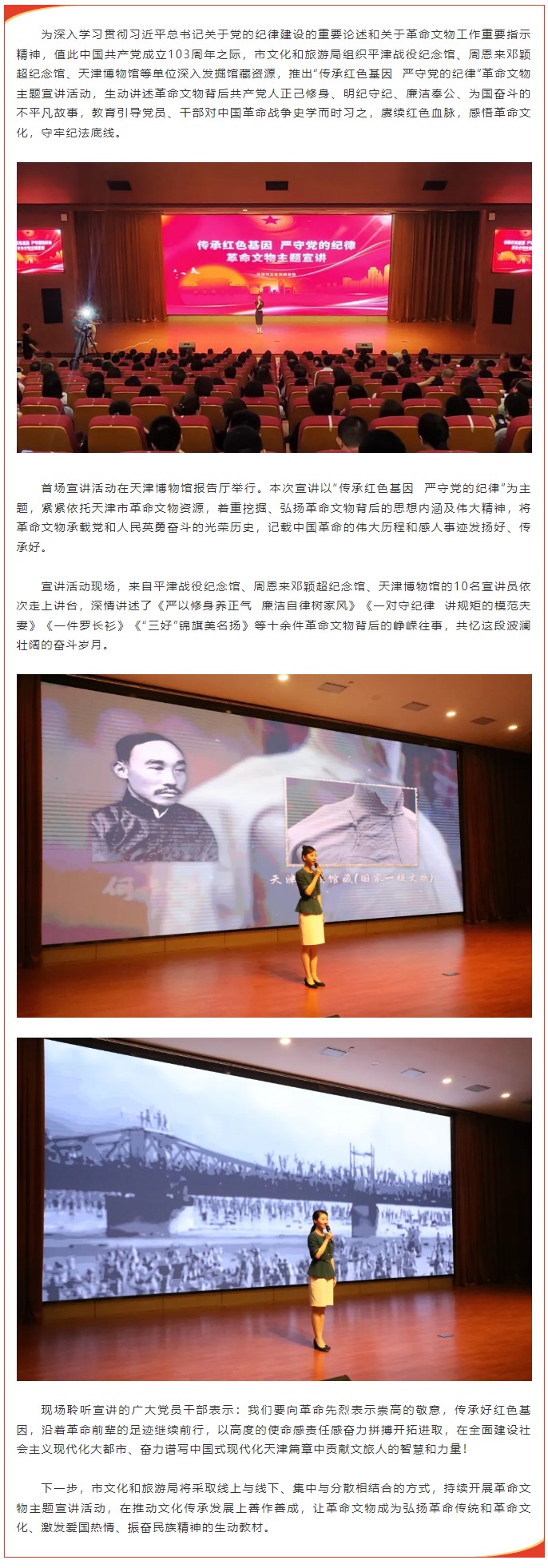 “传承红色基因 严守党的纪律”天津市文化和旅游局革命文物主题宣讲活动圆满举办