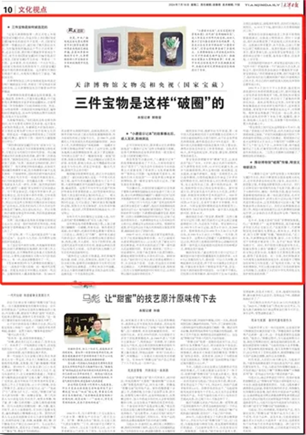 近年来,各地文旅的“顶流”非博物馆莫属,约上“看展搭子”一起参观博物馆,成为越来越多年轻人的社交新方式。“在新形势下,天津博物馆充分把握住发展机会,乘风而上,多措并举,助力文博‘破圈’传播。”姚旸馆长说,“近三年来,天津博物馆利用微博、微信、小红书等社交平台积极开展宣传工作,各平台‘粉丝’数量突破百万。同时,我们坚持不断创新宣传方式,挖掘文物身上潜在‘破圈点’,让陈列在展厅中的文物以更加生动、有趣的方式展现在观众面前,取得了显著成效。另一方面,我们积极谋求与央视等主流媒体的深度合作,有效提升了博物馆的影响力与知名度。‘活’起来的文物,‘火’起来的博物馆,不仅让观众感受到了历史的厚重和文化的魅力,还激发了人们对中华优秀传统文化保护和传承的热情。”
