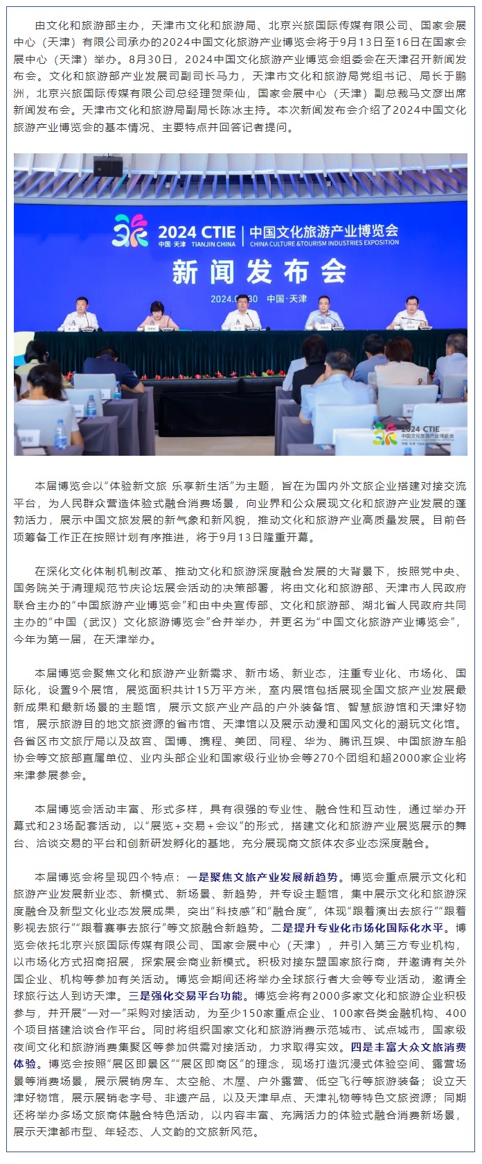 2024中国文化旅游产业博览会将于金秋九月在天津盛装启幕