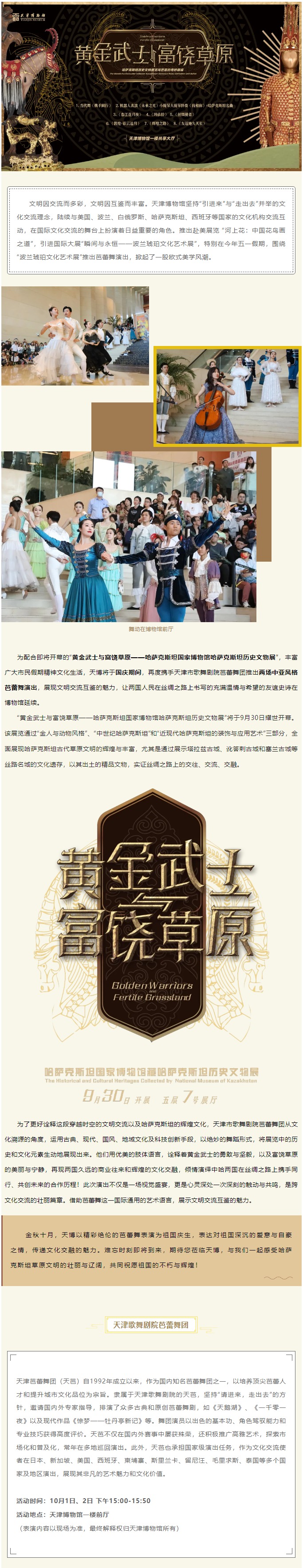 重磅预告|“哈萨克斯坦历史文物展”主题芭蕾即将亮相天博
