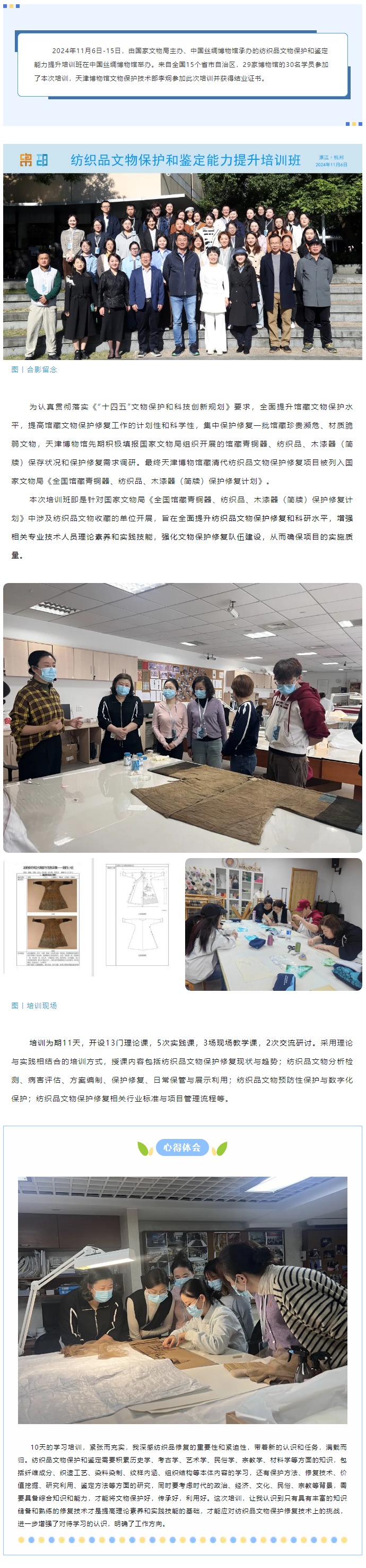 天博业务人员参加纺织品文物保护和鉴定能力培训班