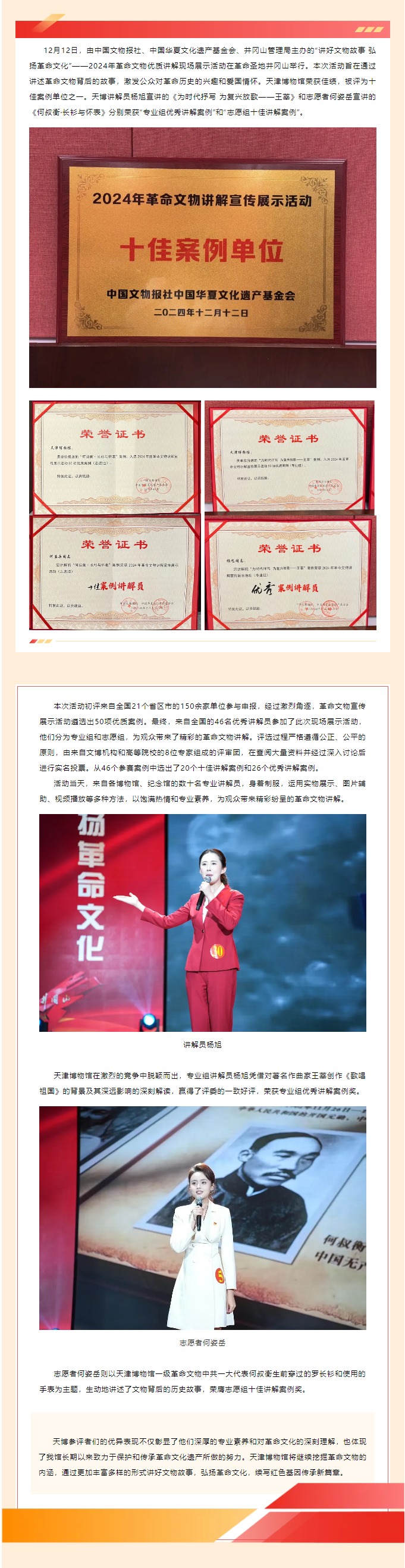天津博物馆在全国革命文物优质讲解展示活动中荣获佳绩
