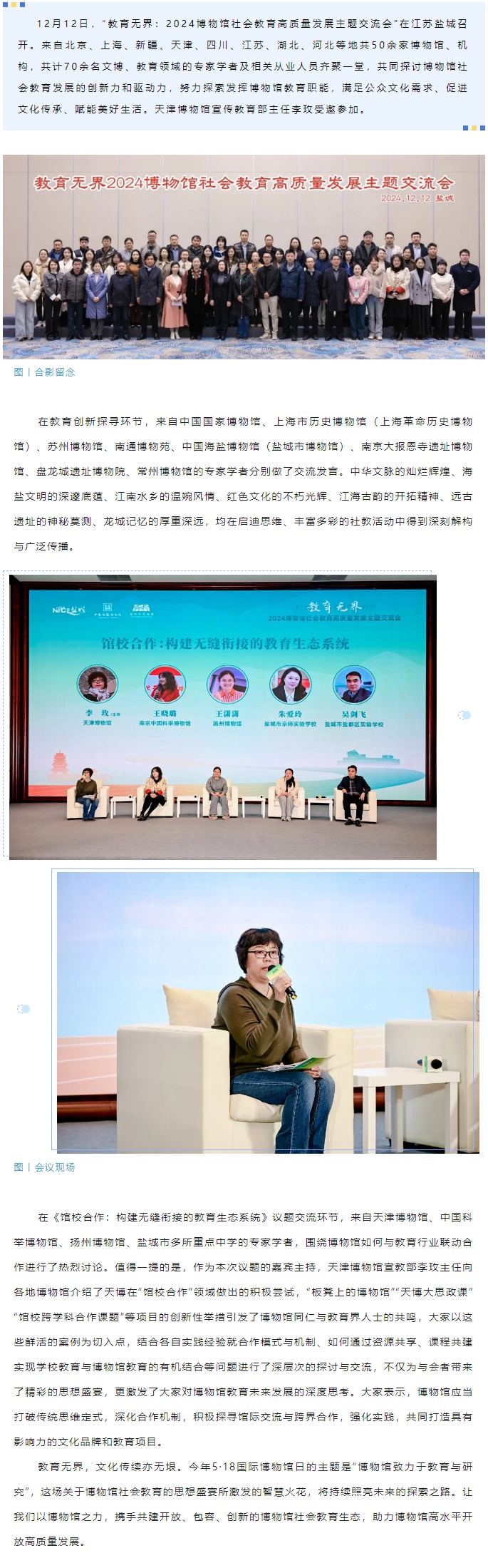 天津博物馆受邀出席“教育无界:2024博物馆社会教育高质量发展主题交流会”