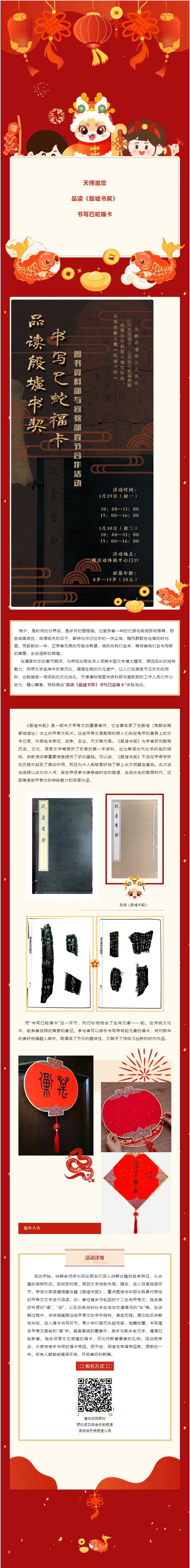 春节活动预告丨来天博品读《殷墟书契》书写巳蛇福卡