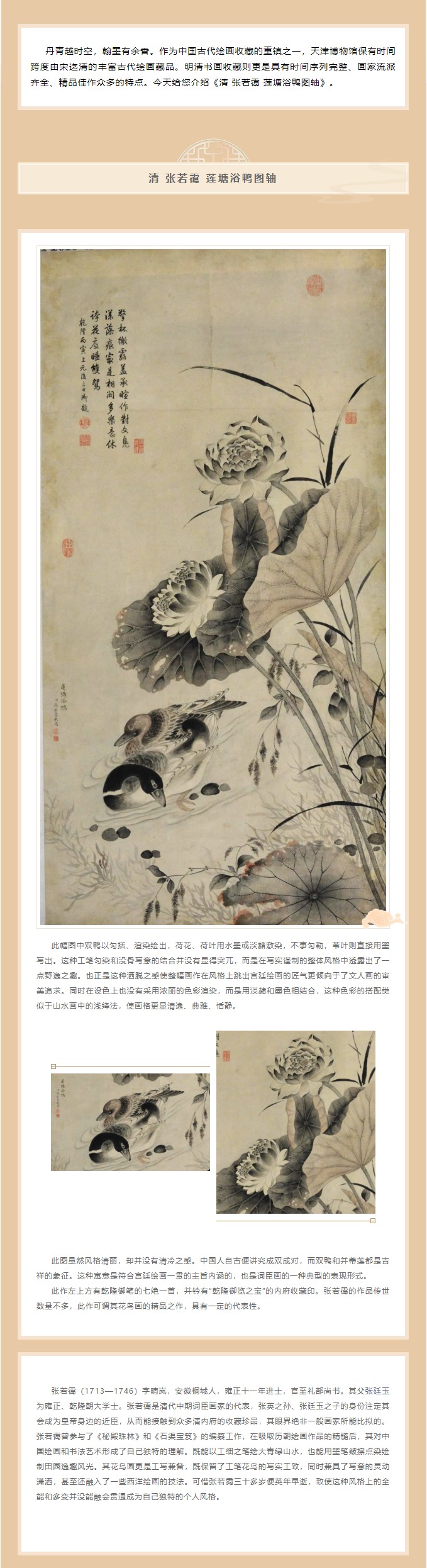 天博藏珍丨清 张若霭 莲塘浴鸭图轴
