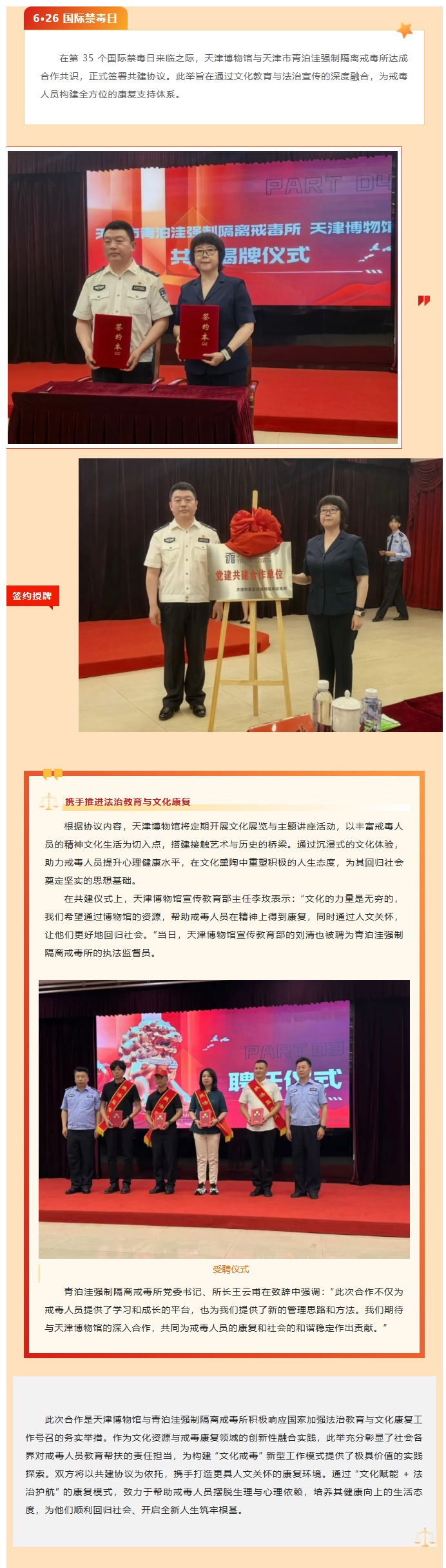 国际禁毒日丨天津博物馆与天津市青泊洼强制隔离戒毒所达成共建合作