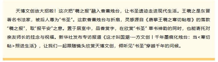 新华社报道丨这才叫国潮·一方文创——千年墨痕化烛台:当《寒切帖》照进生活