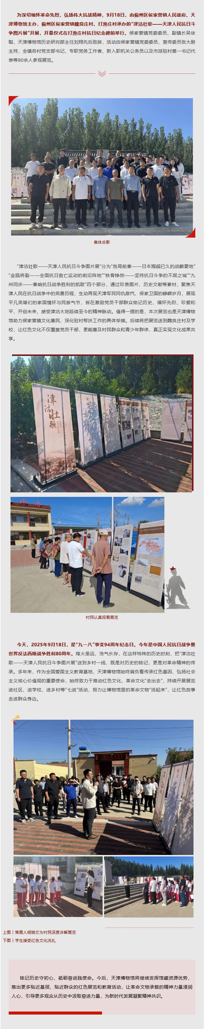 铭记历史传承红色精神丨“津沽壮歌——天津人民抗日斗争图片展”在蓟州区侯家营镇开展