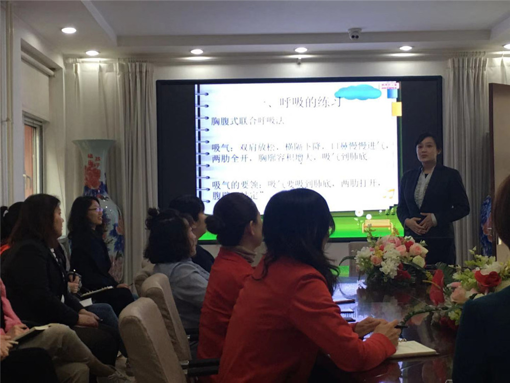 本节课程的重点是呼吸与口齿训练,有21位老师来参加了课程的学习。天博的讲解员老师先是为大家讲解了腹式呼吸方式,又讲了各部位共同协作发声的原理,以及各种发声部位的锻炼方式,老师们都听得非常入神,在天博讲解员的带领下,纷纷模仿发声,感觉学到了很多未曾了解的播音专业知识。