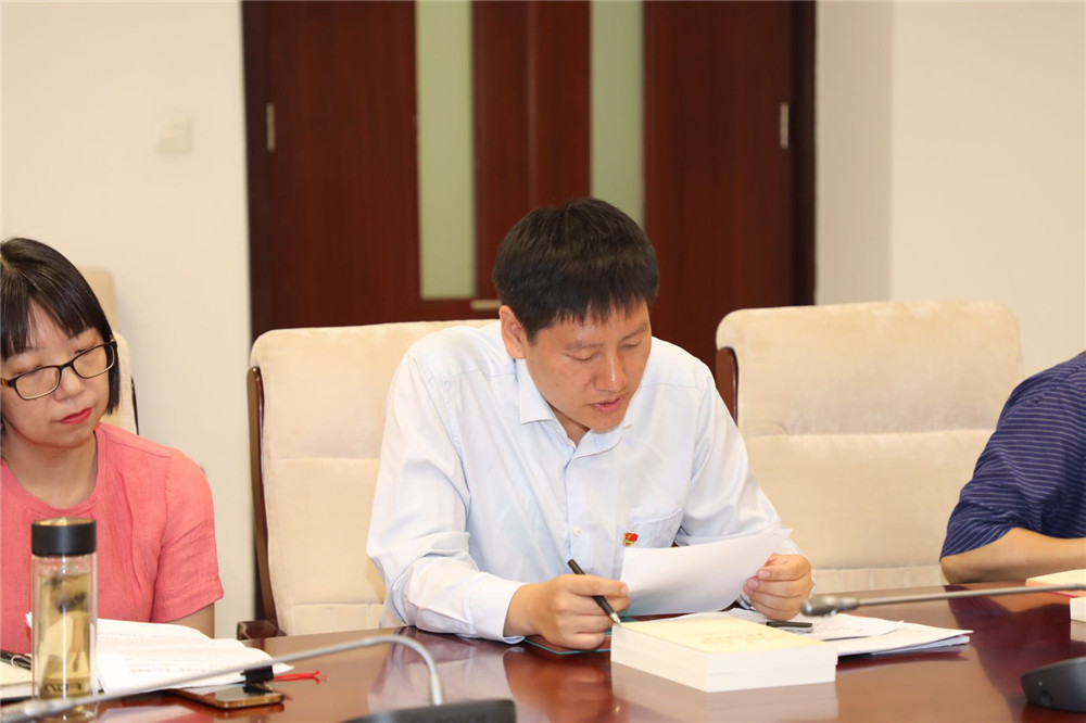来自天津博物馆历史研究部、器物研究部、宣教党支部及文物保护技术部四个党支部的支部书记、支委结合两周的主题教育学习和本部门的工作实际,在会上分别做主题发言,畅谈学习心得体会。历史研究部尹航表示,一个国家、一个民族不能没有灵魂,我们要牢固树立“四个意识”,通过博物馆这一平台,大力弘扬以爱国主义为核心的民族精神和以改革开放为核心的时代精神。器物研究部李君提到,该支部共有党员十四名,占全部门总人数的百分之七十。在开展“不忘初心、牢记使命”主题教育学习实践活动中,支部将学习化作日常工作中的强大精神动力,在工作中促进学用结合,出色完成各项工作。“我们所从事的文物保管、研究和展览工作看似平凡,却肩负着重要的历史使命。”李君如是说。宣教部党支部张堃则在发言中提到作为一名普通的文博工作者,正逢中国博物馆事业发展的高峰,弘扬中国优秀传统文化、讲好中国故事是时代赋予的使命和责任。文物保护技术部党支部李彬着重谈到理论学习的重要意义,“理论是行动的先导。只有认真读原著、学原文,悟原理,才能真正理解党的伟大思想,才能体会到习近平新时代中国特色社会主义思想的伟大光辉。唯有如此,在发展中遇到问题的时候,才能思考出推动实现高质量发展的路径;在遇到矛盾纠纷的时候,才能够拨开迷雾看到事物的本质,找到化解矛盾纠纷的好办法;在遇到困难时,才能够不断激发创造活力,根据事物的发展变化规律,找到解决问题的好办法。”