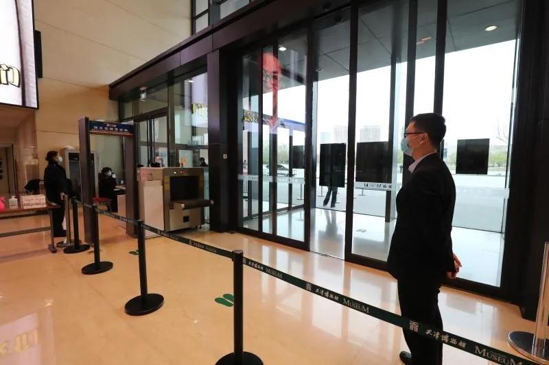 当下正值疫情防控的特殊时期,天津博物馆开馆前做了充足的准备。“恢复开馆前,我们已经将馆内的空调和新风系统进行了清洗和消杀。馆内停止中央空调供暖系统,完全采用新风系统,保证馆内足够的空气流通。在原有地面、柜面、桌面保洁的基础上,增加了消毒频次。对出入口、门把手等使用频繁点位不间断消毒作业;扶梯、导览器、观众存包处等定时消毒作业。”天津博物馆行政部主任李光介绍。开馆后,天博准备了不少防疫设备、物资,严格控制4平米一位观众的密度,每个展厅都安排4—5名工作人员。刚刚经过安检门的李女士表示,天津博物馆的热成像体温检测设备“太方便啦”,“我都没感觉到,真正的无感进馆”。