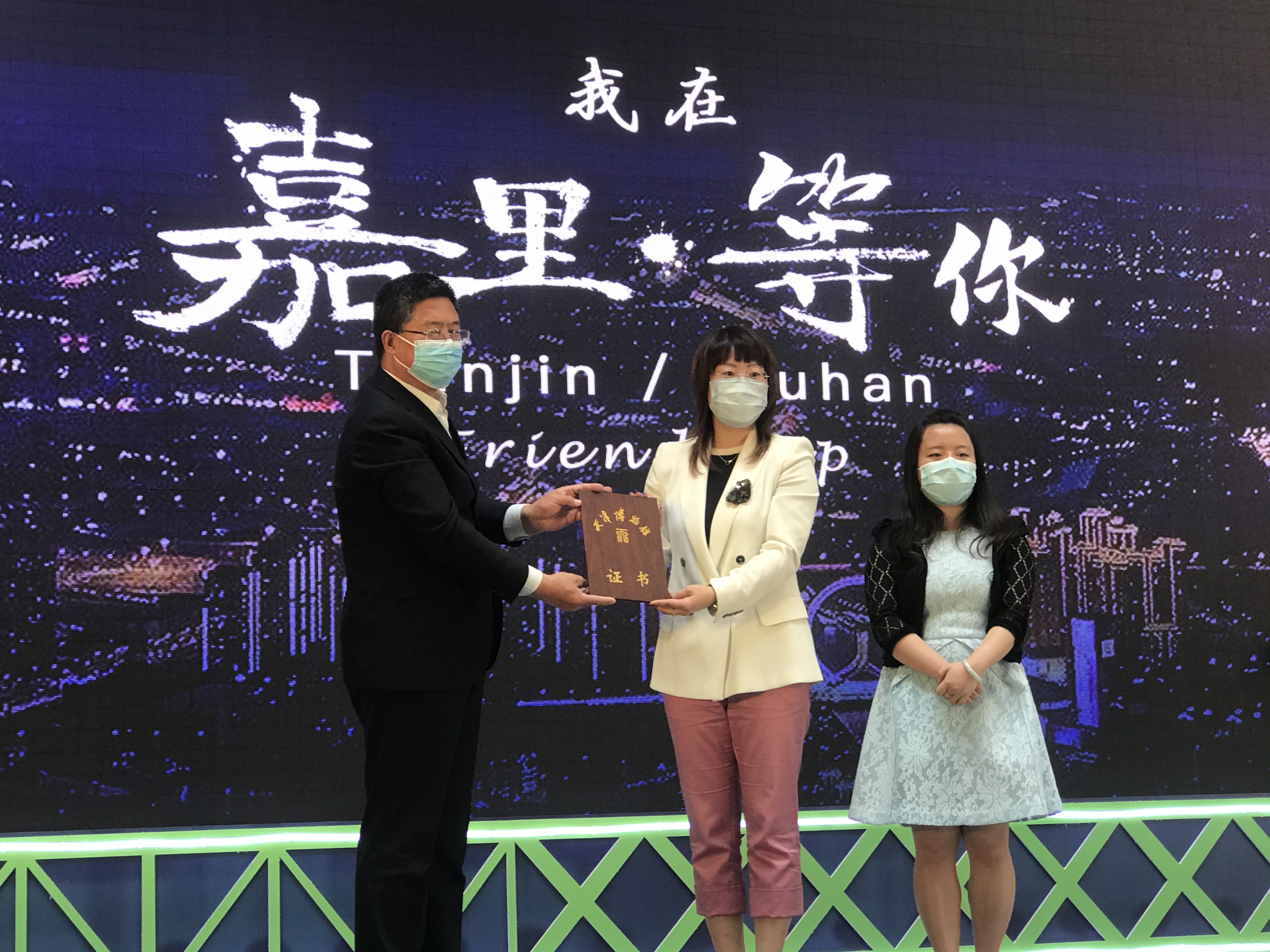 5月12日上午,恰逢国际护士节,一件跨越1160公里,从武汉来到天津的“武汉防护服”由天津嘉里汇购物中心捐赠给了天津博物馆。副馆长王建平代表天津博物馆接受捐赠并为嘉里汇购物中心颁发捐赠证书。