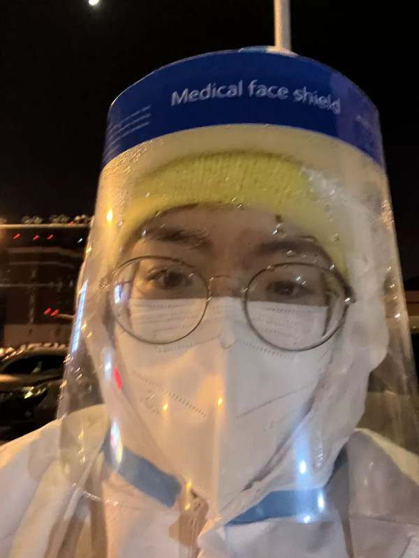 1月11日夜,在接到二筛通知后,韩琳又第一个报道社区,在核酸检测点维持秩序。温度渐降的深夜,呼出哈气形成的水柱冻在防护面罩上,韩琳依然坚守着,引导老幼居民进入绿色通道,辅助居民填写核酸预约卡。凌晨3点,接到防疫指挥部通知,暂停核酸检测,韩琳又与其他志愿者们组织居民返回社区,并耐心安抚大家的情绪。