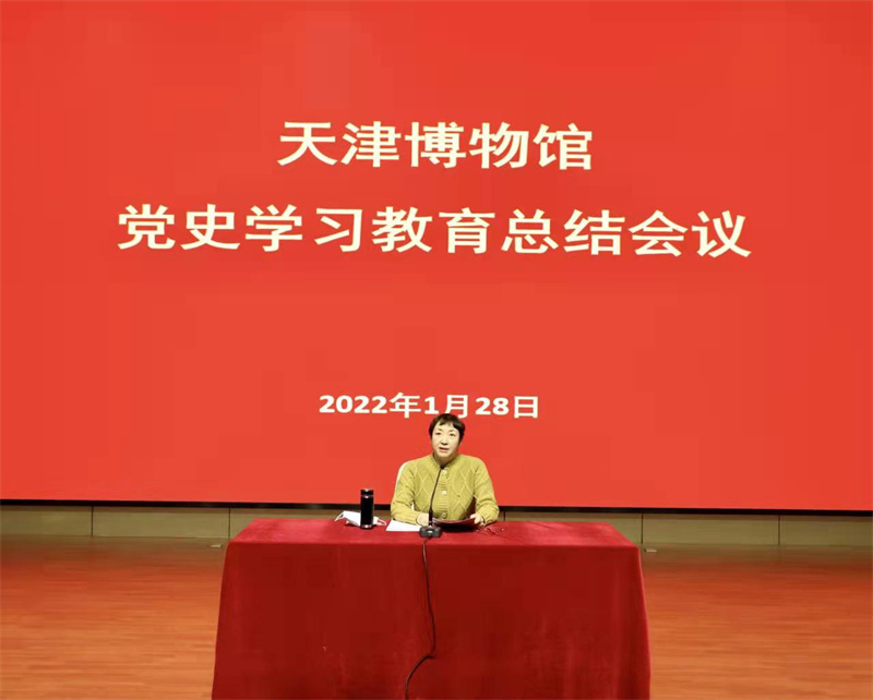 张玲首先传达了中央和我市党史学习教育总结会议精神。党委书记、馆长陈卓做了天津博物馆2021年党史学习教育总结报告,并对下一步工作提出具体要求。