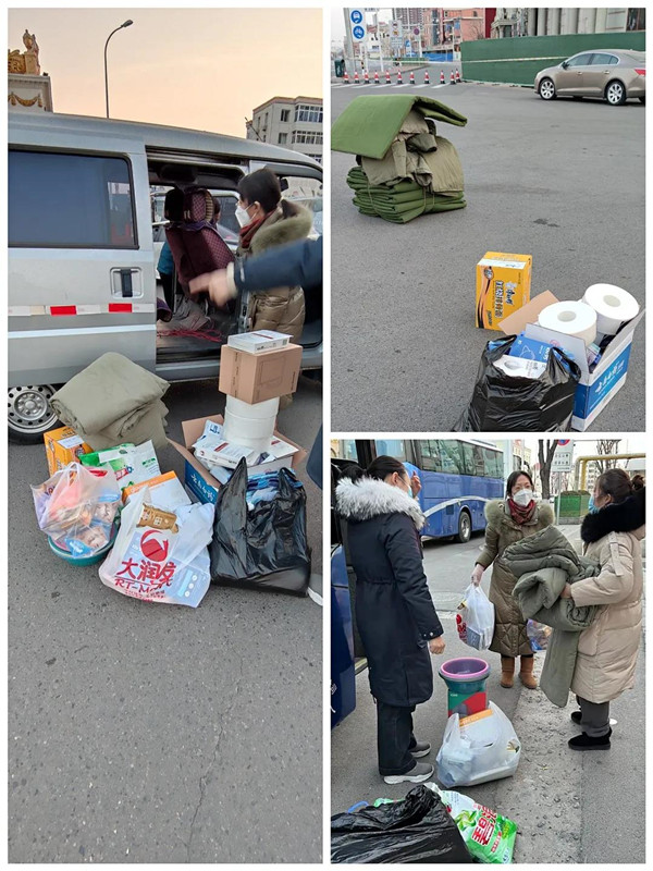 当我们在前方冲锋奋战时,单位的领导和同事也在后方全力守护,让我们放心、安心。如果说信仰的力量是我们的指路明灯,那么后盾的支撑,则是我们的温暖依靠。从接到紧急出发通知之后,天津博物馆党委及各位馆领导、同事们通过电话、微信等形式一直与我们保持联系,不断给予我们细致周到的叮嘱,及时准备保障物资支援我们。由于津南实行管制,馆里的物资只能送到管制区以外,单位多方寻找车辆,将物资辗转送到我们手中。我们还没到目的地,馆里的保障物资就已经送到我们的手上,内心真的是感动不已。到了目的地,领导们更是随时了解我们的工作和生活情况,及时采购物资。例如因为准备时间仓促,同志们大多没有带齐住宿用品,而又要席地而睡,单位及时为我们准备了床垫、被褥、枕头、洗漱用品等物资,还贴心的为我们购买了吹风机和保暖内衣,使得我们在寒冷天气穿脱防护服不至于受凉,同时采购了各种能让我们迅速补充体力的食品……兄弟单位的同志们对我们第一时间获得的充足物资纷纷表示羡慕不已。这些细致入微的关怀,使我们感受到像孩子一般被心疼、被宠爱,是我们坚强而温暖的依靠,更加坚定了我们在支援一线奋力拼搏的信念!千言万语汇成一句话,“感谢馆党委、馆领导和各位同事的关心和照顾,我们定当不负重托,不辱使命!”