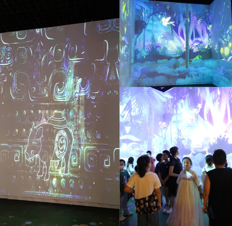 展厅结尾处还设置了互动体验区,将绘画与虚拟现实技术相结合,用新奇的互动体验为孩子们建立起青铜纹饰与动物形象之间的关联,以增强观众、特别是青少年朋友参观的趣味性。